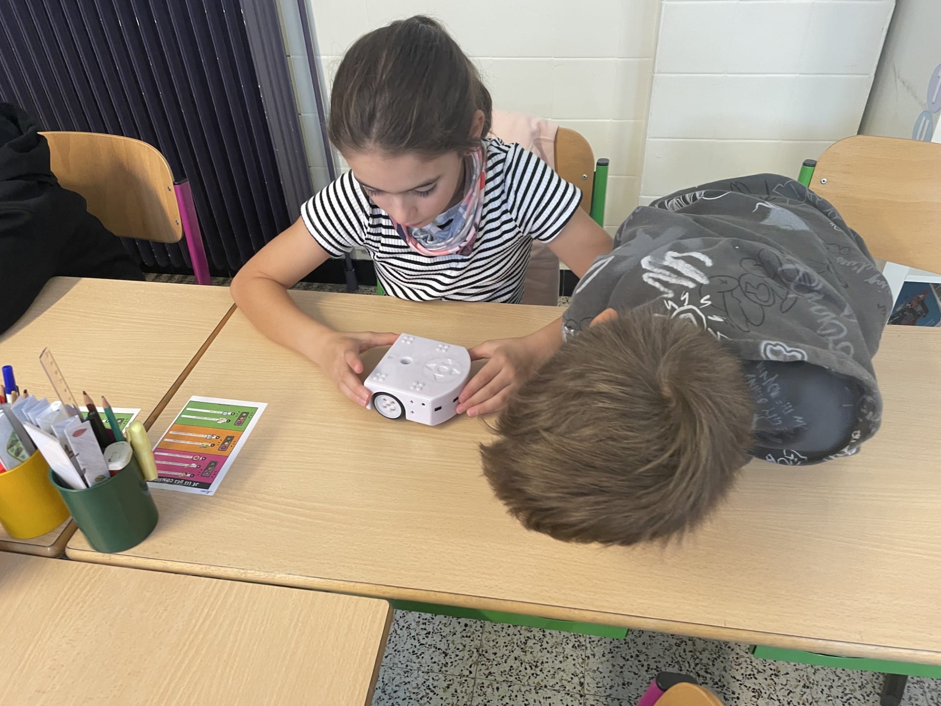 Les élèves ont découvert l’univers fascinant de la robotique en explorant les objets technologiques qui les entourent et leurs composants. Grâce à la manipulation concrète des robots, ils ont appréhendé leur fonctionnement et leur application dans le monde d’aujourd’hui.